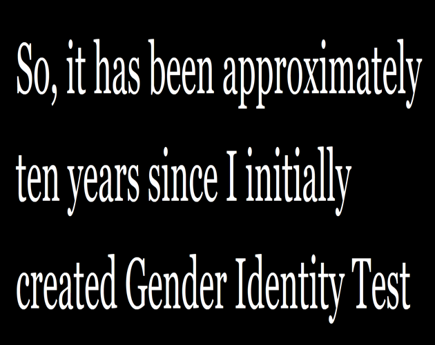 It's been ten years since I last released Gender Identity Test. So why not take a look back at it as I hope to reflect and expand upon some of the choices that were made in Gender Identity Test.